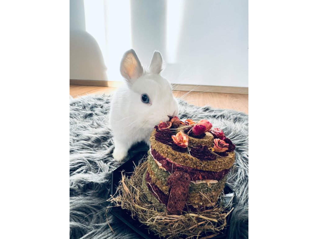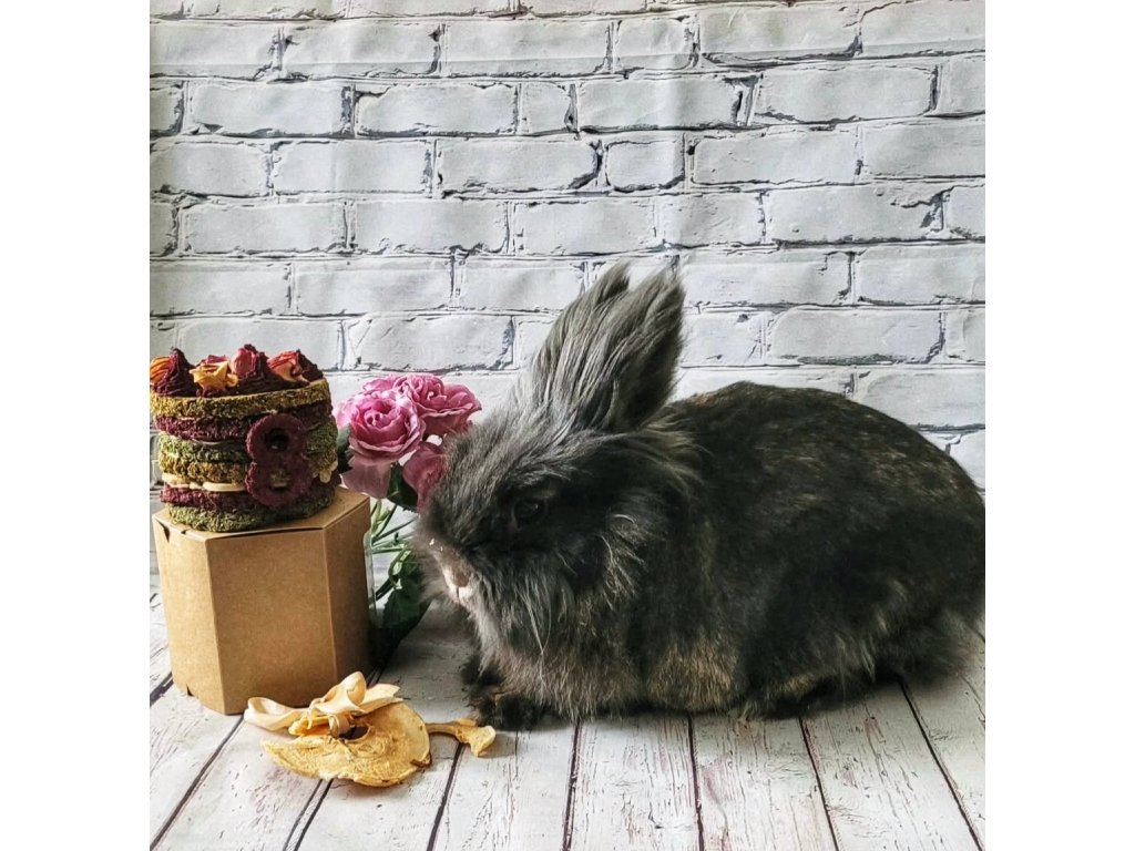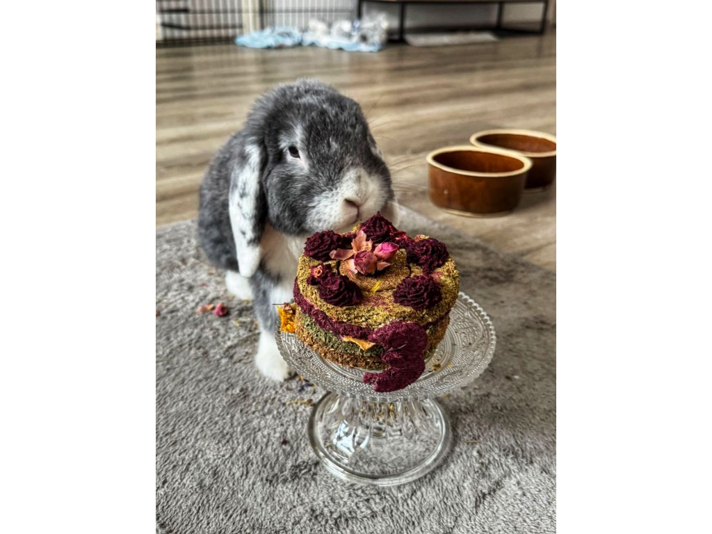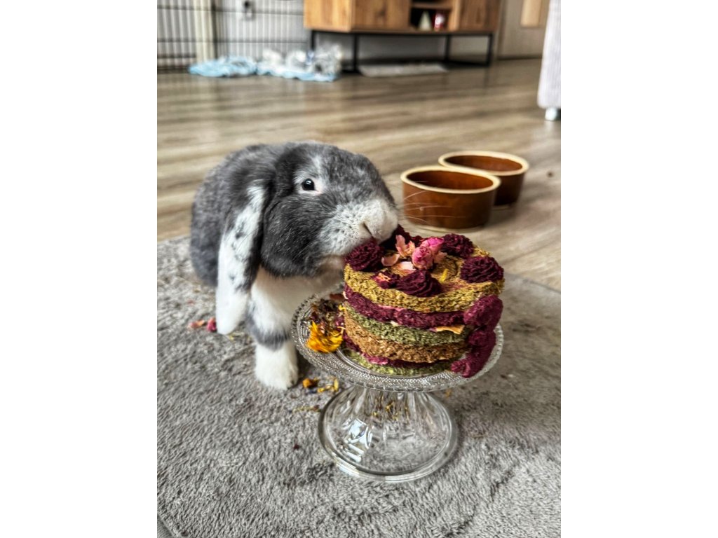 Pro speciální narozeninovou párty, za odměnu, nebo jako dárek je zde náš lahodný dortík bez obilovin, barviv, hrachu, škrobu a jiných nevhodných přísad. Po odklopení “čepičky” dortíku zjistí každý mlsný čumáček, že je dort vyplněn květy bylinek (heřmánek, chrpa, sedmikráska, měsíček, sléz, růže).